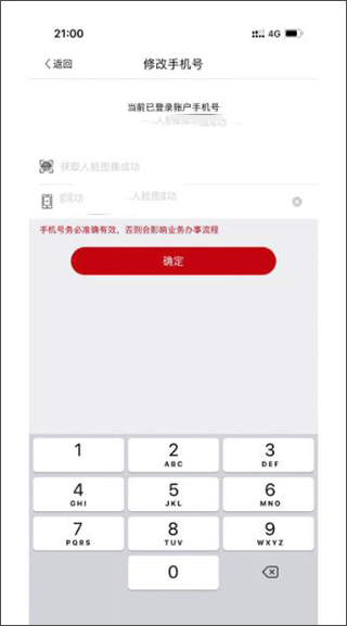 五、修改手机号码进入账号管理 点击“手机号”进入修改手机号页面,扫脸后输入新手机号码,确认后完成手机号码修改操作。