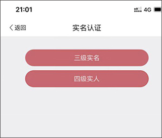 六、实名等级新注册成功用户都是三级实名,用户可以点击“实名等级”--->“四级实人”,通过扫描人脸提升为四级实人。