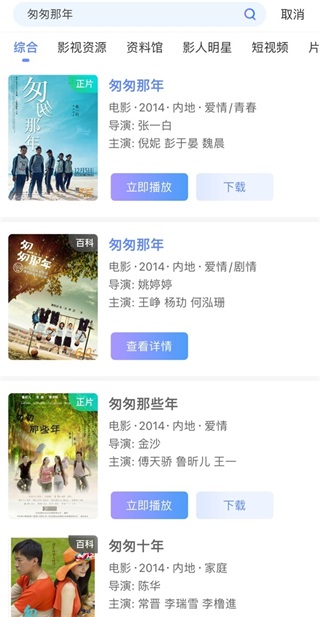 2、以匆匆那年为例,选择资源,点击“立即播放”;
