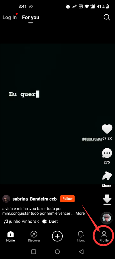 1、下载安装好kwai快手国际版后,点击右下角的“profile”后。