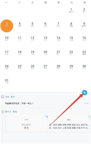 首先在您的手机中安装好365日历,然后在日历软件的主界面上,点击一下“加号”图标,如下图所示的位置,就可进入到日程添加选项了!