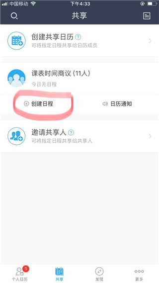 1、打开365日历APP,点击下面"共享",进入共享页面