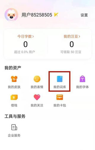1、打开搜狗,点击右下角我的,点击我的词库。