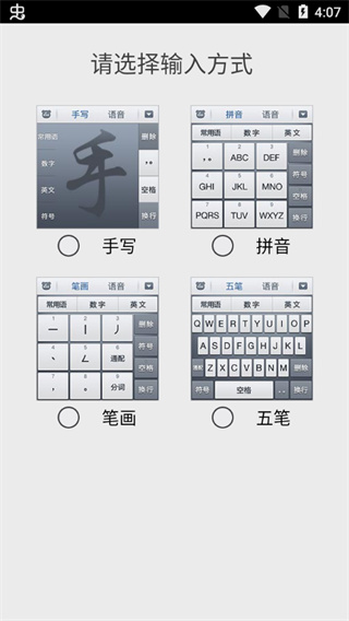 支持手写、笔画、拼音、五笔、英文等多种输入方式