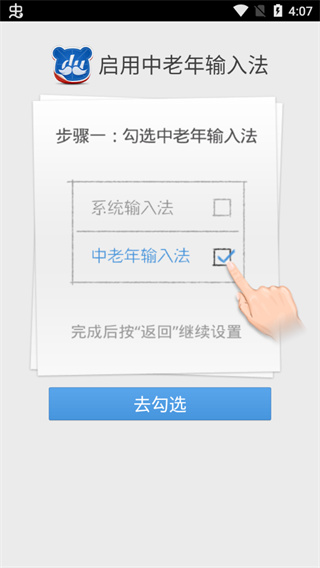 2、根据提示进行安装,在安装过程记得切换并勾选中老年输入法;