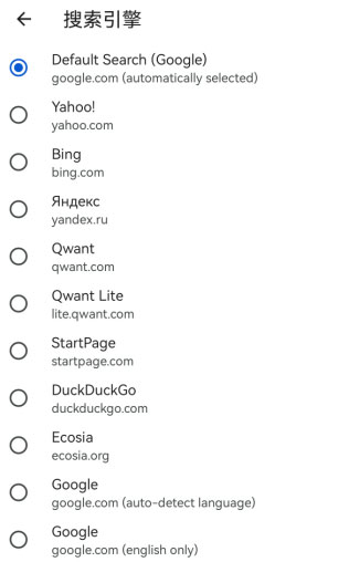 第五步,在列表里选择你要使用的默认搜索引擎就可以了。