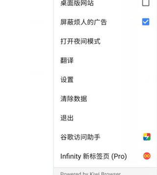 Kiwi 支持大多数 chrome 桌面扩展!从Chrome 网上商店获取它们并在选项 ->扩展中启用它们。