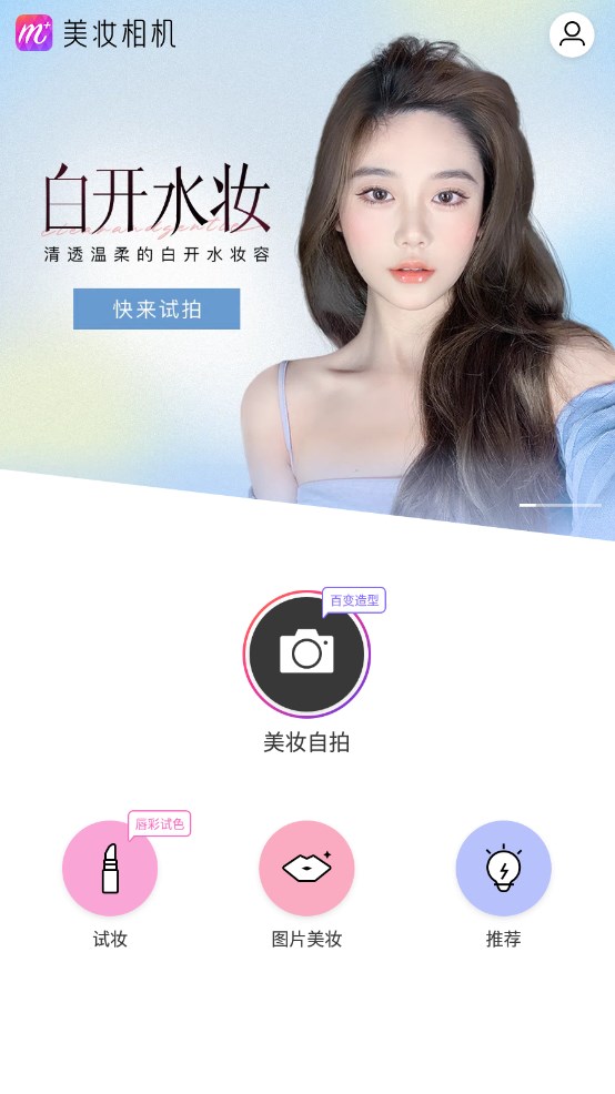 1、打开下载好的美妆相机app,点击【美妆自拍】。