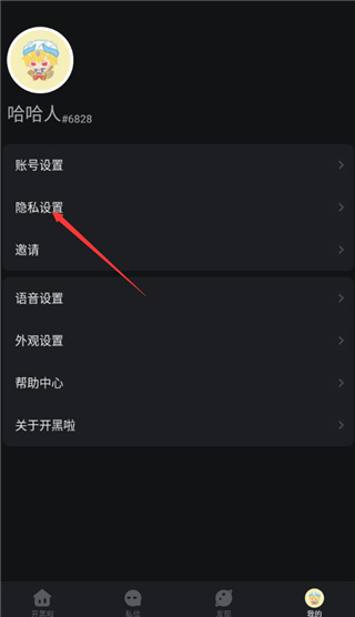 1、打开这款开黑啦app,在首页中点击“我的”;