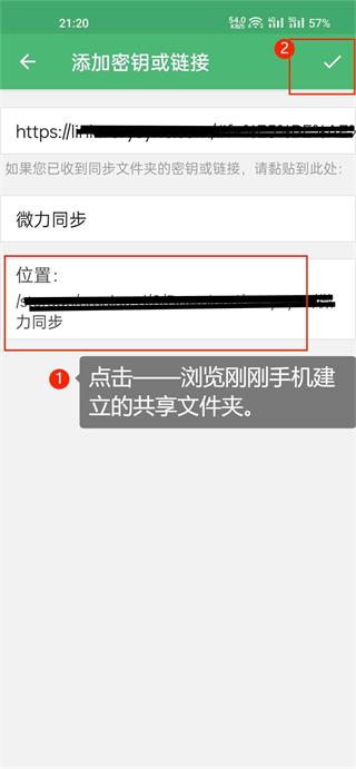 3、扫二维码后出现如下界面:点击浏览手机建立的共享文件夹。这样共享文件夹间的联系链就建立好了。