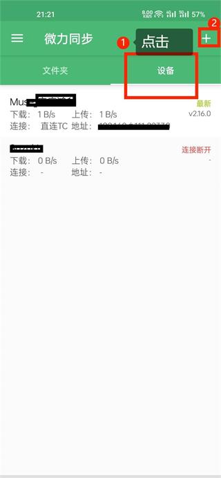 手机端:点击“设备”——点击“+”