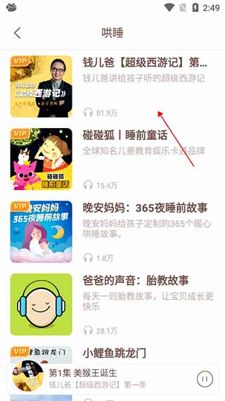 2、这里以哄睡为例,任意选择一个合适的内容打开;