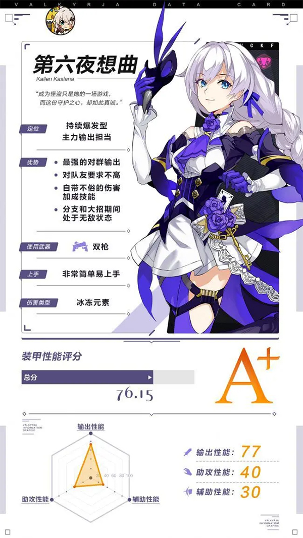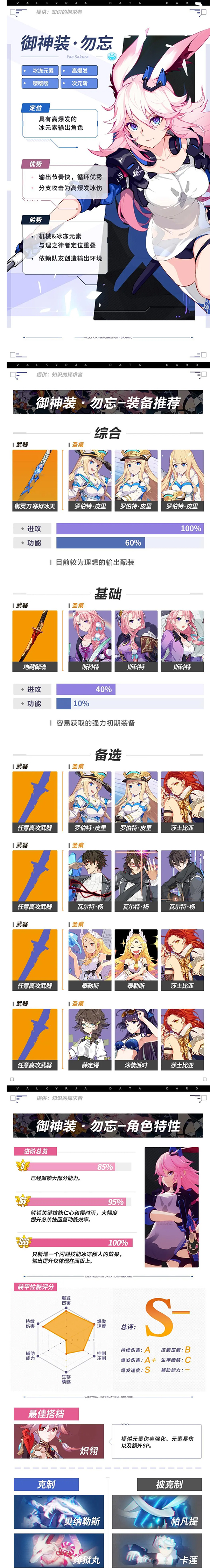 干啥啥不行,杀猪第一名,对超限和ss解锁的动能回复有较高的需求,由于灵魂觉醒角色升ss要大量碎片所以如果不是厨力党不建议培养,好看即可
