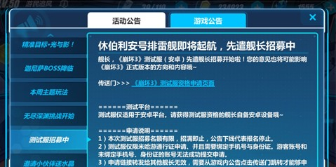 进入《崩坏3》正式服,打开游戏内公告,公告中找到-测试服招募。