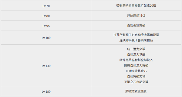 随着黑精灵等级提升,光原石自动合成及自动突破、自动采集等需要耗费很多时间的事情黑精灵都可以代为服务喔!