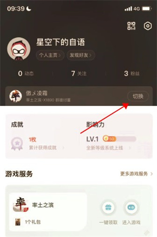 1、先打开网易大神APP,在“我”的功能界面下点击切换角色。