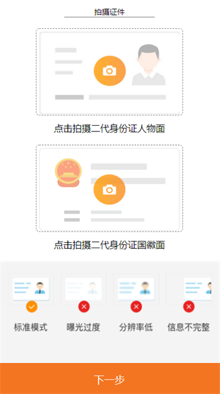 2.用户对身份证进行扫描、拍摄并记录身份证信息。如身份证扫描成功,界面会弹出证件信息供用户确认是否正确,用户确认无误后进入下一步操作。