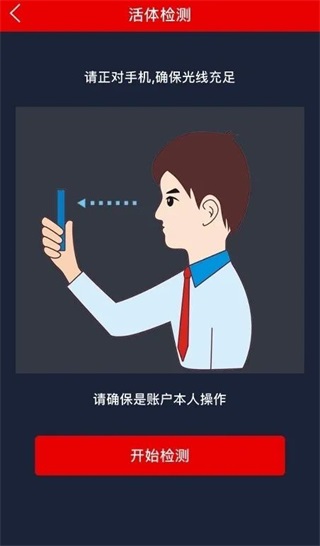 3.用户确认身份信息无误后点击“下一步”,本步骤将进入人脸识别页面进行人脸识别。