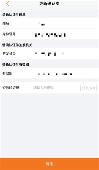4.人脸识别成功后跳转至更新确认页(此时需要确认页面上的信息)。