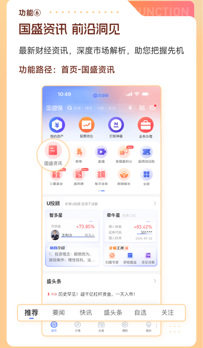 国盛通APP是国盛证券倾力打造的一款集股票开户、极速交易、股市行情、基金理财、办理业务为一体的股票/证券/炒股/理财/投资/财经/金融软件。由国盛证券自主研发,以用户需求为中心,利用大数据、云计算等技术手段开发的基础上进行界面重构、功能拓展、技术升级和服务等优化,倾力打造一款行情更快、交易更爽、服务更智能及系统更稳定的投资终端。