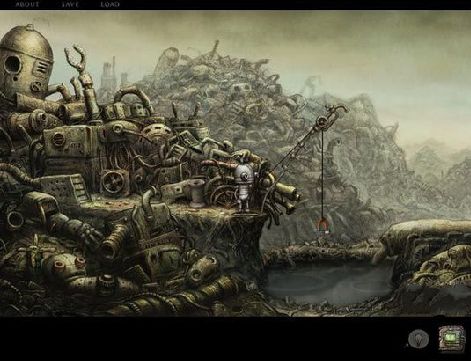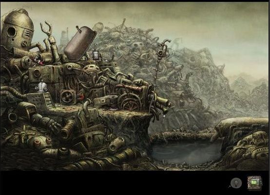 在《Machinarium》中的机器人们看起来意外的老旧、锈蚀,却因手绘的关系而让人感到独特的亲切感。这个城市里看起来一片和谐,也充满惊奇。