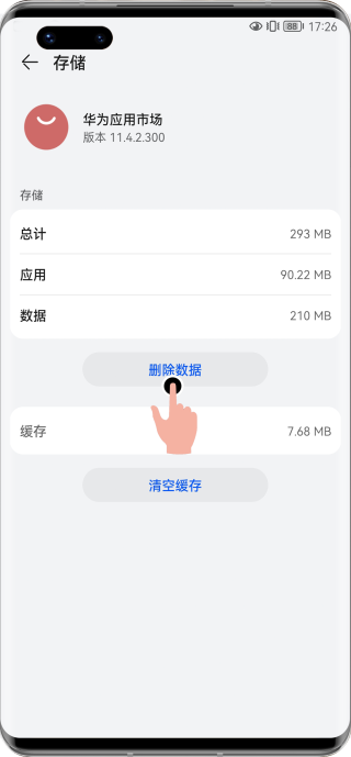 EMUI9.0及以上:点击设置 > 应用 > 应用管理 > 华为应用市场 > 存储。