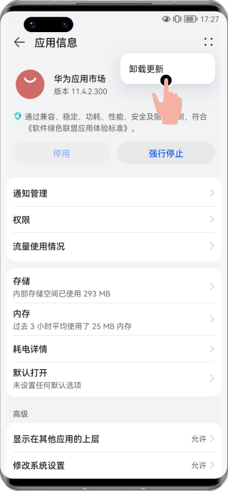(2)在右上角三个点或四个点中点击卸载更新,将应用市场替换成出厂版本。