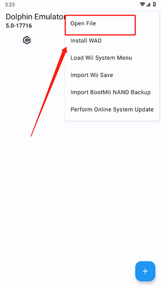 2、然后点击右上角三点,可以看到图示菜单,点击【open file】可以运行文件。