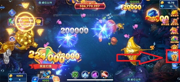 1、进入捕鱼场,点击屏幕可开始开炮