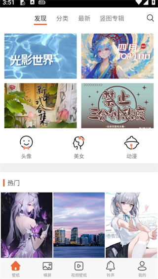 爱壁纸App是一款汇集海量优质壁纸的应用,每日更新200+张高清美图,涵盖影视明星、自然风光、萌宠动物、游戏动漫等20+个热门分类,满足你的各种审美需求。