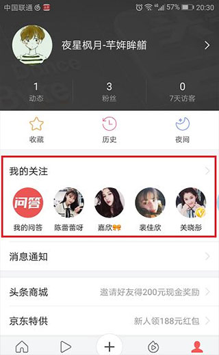 第二步进去之后,选择“我的”界面,点击我的关注,如下图所示:
