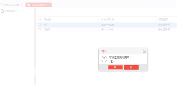 5、选中你想要的党员名字,点击删除;