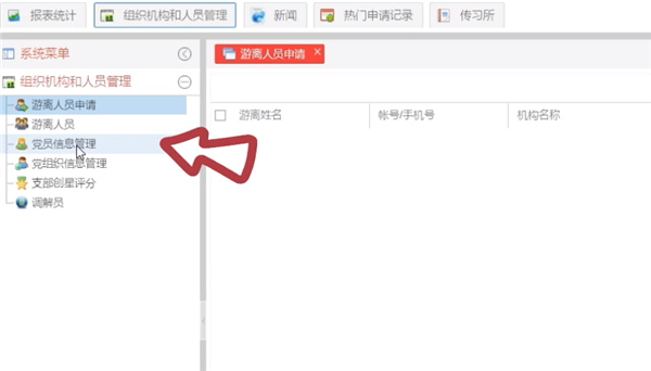 3、点击党员信息管理;
