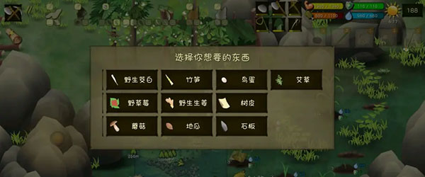 每个场景都可以烹饪菜肴,需要你收集不同的食材进行烹饪,当你生存的越久更需要烹饪菜肴来提高自身的健康度。
