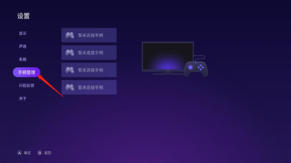 1、下载随乐游云游戏TV版后首先进入我的-设置-手柄管理中连接手柄;