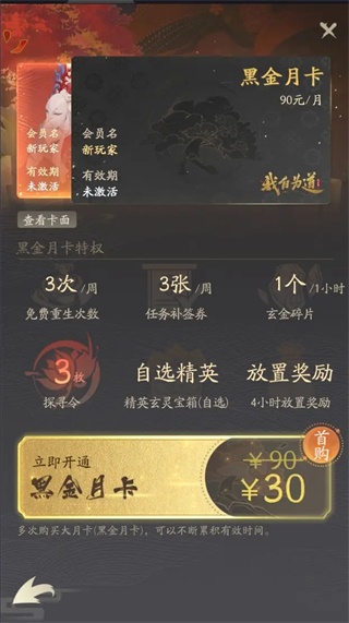 黑金的四小时放置是每天都给一个的,这个建议前期存着,等图推得差不多了再用,大概6-9章之后用,这样收益更大。这里说明一下影响挂机奖励的只有推图进度和时间。开黑卡后升级为每个小时送一抽!但不与礼遇叠加!
