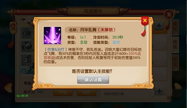 2、除被动技能外,每个英雄上阵时只能使用一个特定技能,只需将那个技能设置为默认主技能即可。