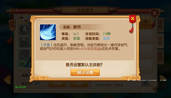 2、除被动技能外,每个英雄上阵时只能使用一个特定技能,只需将那个技能设置为默认主技能即可。