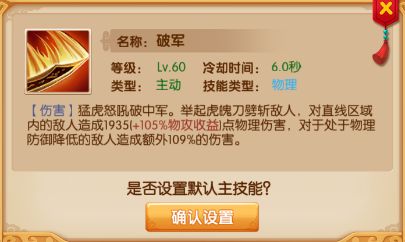 关于技能的搭配,请各位玩家自己多花点时间去熟悉各个英雄的技能。因为无论你设置哪个技能为默认,其他技能都是会按CD顺序进行释放,默认技能只是优先释放而已。所以请注意你的英雄阵容搭配。再去设置默认技能。比如你前排主T是盘古,后面有个蚩尤,那么你可以将盘古的技能设置为:立乾坤,(带破甲)蚩尤的技能设置为破军,(破甲额外伤害)。不要思考全局性,因为全局性的技能大部分是被动的。有2、3个英雄技能关联就好了。再看后排其他的英雄技能关联。