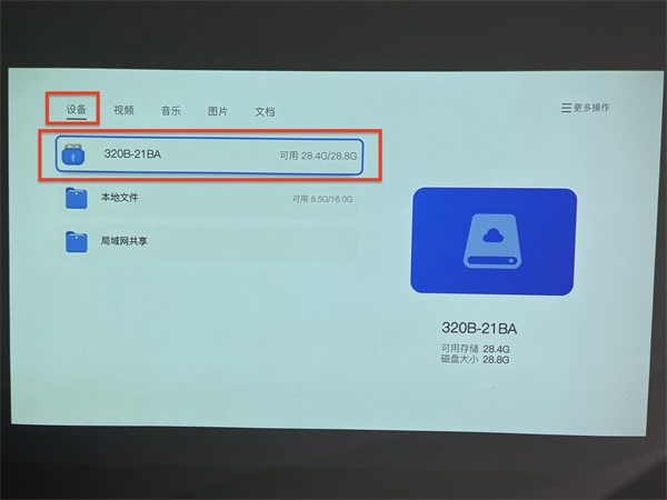 注意:此时检查你的U盘格式是否为FAT32或NTFS,如果格式为其他则会出现电视盒子无法识别的情况。当格式不符时,需要将U盘插入电脑,然后右键进行格式化操作,选择格式化为FAT32或NTFS格式即可。如果仍然无法识别U盘请联系您购买的投影仪厂商客服。