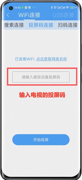 2、点击【开始投屏】,可以搜索电视设备名,点击连接