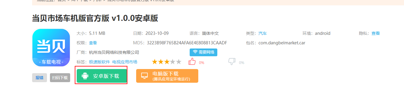 1.在本站将当贝市场车载版下载保存至U盘内