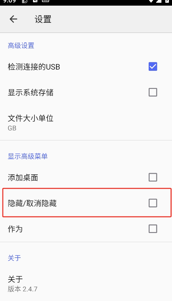 最让我觉得方便的是它的隐藏目录功能,操作起来超级简单。先去设置里勾选“隐藏/取消隐藏”,然后在主存界面找到想要隐藏的文件夹,点击更多选项里的“隐藏”就能完成。取消隐藏的话,只要打开“显示隐藏文件”开关,再选择取消隐藏就行了。