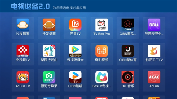 电视必备TV版一款聚合了时下各种影视盒子的综合软件,可以解决大多数用户不知道应该安装什么应用的烦恼,让您可以更愉悦的看电视。用户只需要将该软件安装在电视上,然后即可下载您需要的电视应用,点击下载即可自动安装,就像是您进入手机市场下载应用一样的,非常的方便。