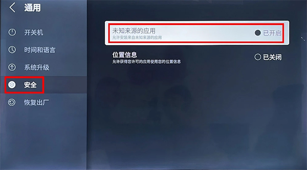 3、找到【通用】-【安全】-开启【未知来源的应用】
