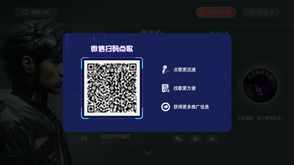 7、点击上方扫码点歌可以出现二维码,扫描二维码进行手机点歌