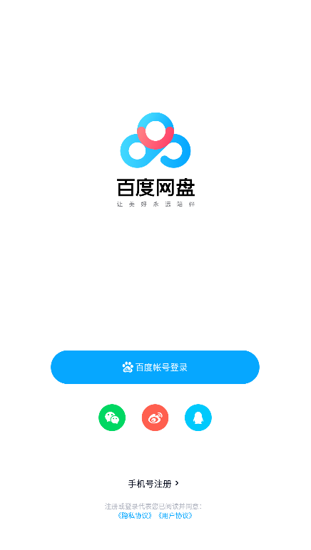 1、首先登入百度网盘,支持手机号、微信、QQ、微博等方式登入。