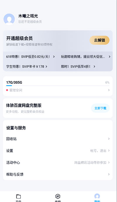 这款百度网盘体验版确实挺有意思的。首先体积只有不到40M,安装特别方便,比我之前用的其他软件快多了。最让我喜欢的是没有广告,界面看着清爽多了,下载速度也很快,一般能到1.3M/s,感觉比普通版快不少。功能虽然简单,但上传、下载、分享这些核心功能都有了,而且还能存储各种文件和同步到多个设备,挺方便的。