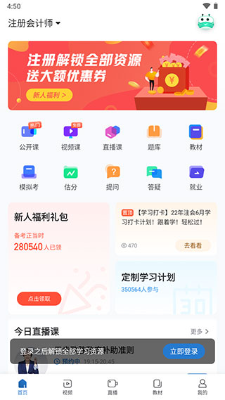 操作上也很简单:下载安装后注册账号,首页就能看到各种功能模块。想学习视频课程的话,商品模块里资源丰富;想要刷题,直接去题库就行。最棒的是有专业的备考团队随时答疑,解决各种报考和学习上的问题。