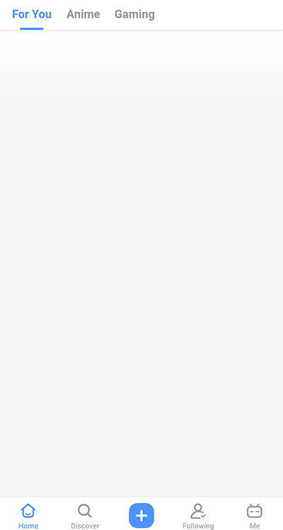 1、在本站下载并安装哔哩哔哩泰国版,如果此时打开哔哩哔哩可能会什么内容都没有一片空白(如下图所示),下面给大家说说解决方法